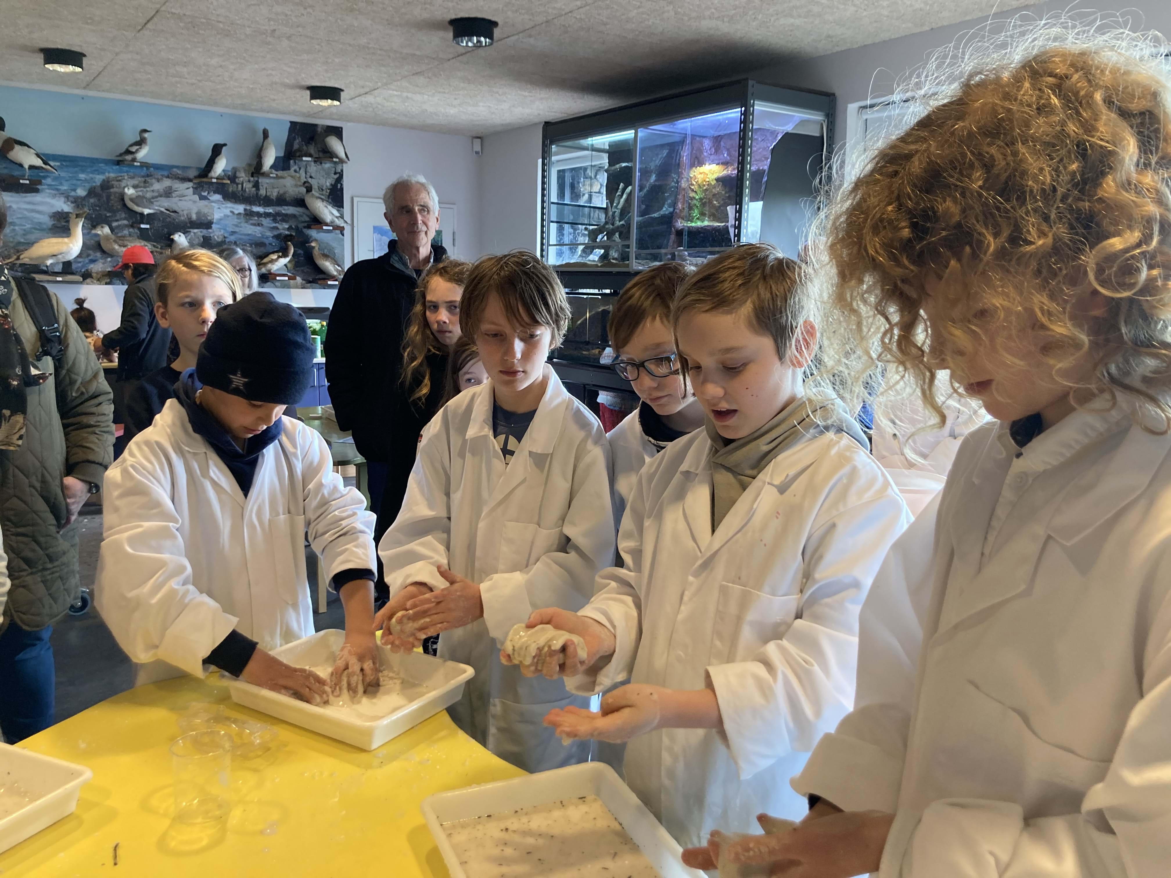 Hvordan kan man vide, at der har levet på Bornholm dinosaur, svaneøgler, eller trilobitter for millioner af år siden, og hvordan finder vi spor efter dem? Vi taler om de spændende fortidsdyr, som vi kender kun fra forsteninger, og om hvordan en forstening dannes. Ud fra ægte forsteninger kan du forme dit eget fortidsdyr af fortidens materiale – ler og derefter lave et gipsaftryk af dit fortidsdyr, som du kan tage med hjem.
